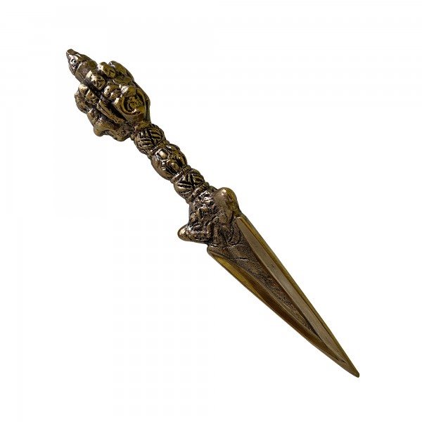 Dorje head three-face design large size rich design brass Phurba is strong and little heavier than our other phurba. Since the horse head 3-face brass phurba is entirely handmade; there can be slight variation in the given detail. The given weight of the item is calculated for the shipping purpose, so that the actual weight can be different than it is mentioned here.
